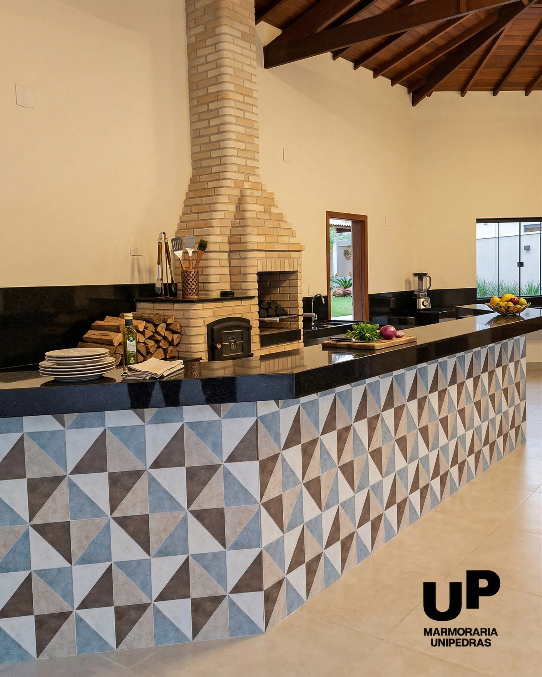 Execução em pedras naturais selecionadas com detalhes refinados e acabamento de alto padrão.
